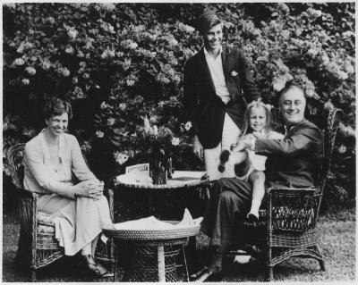 Franklin D. Roosevelt, Eleanor Roosevelt, John, and Sistie in Hyde Park, New York. [Archivist note: from FDR Motion Picture Films misc scenes 1931-39]. Photo Credit: Franklin D. Roosevelt Presidential Library & Museum